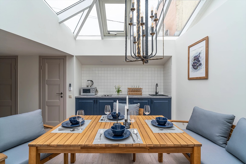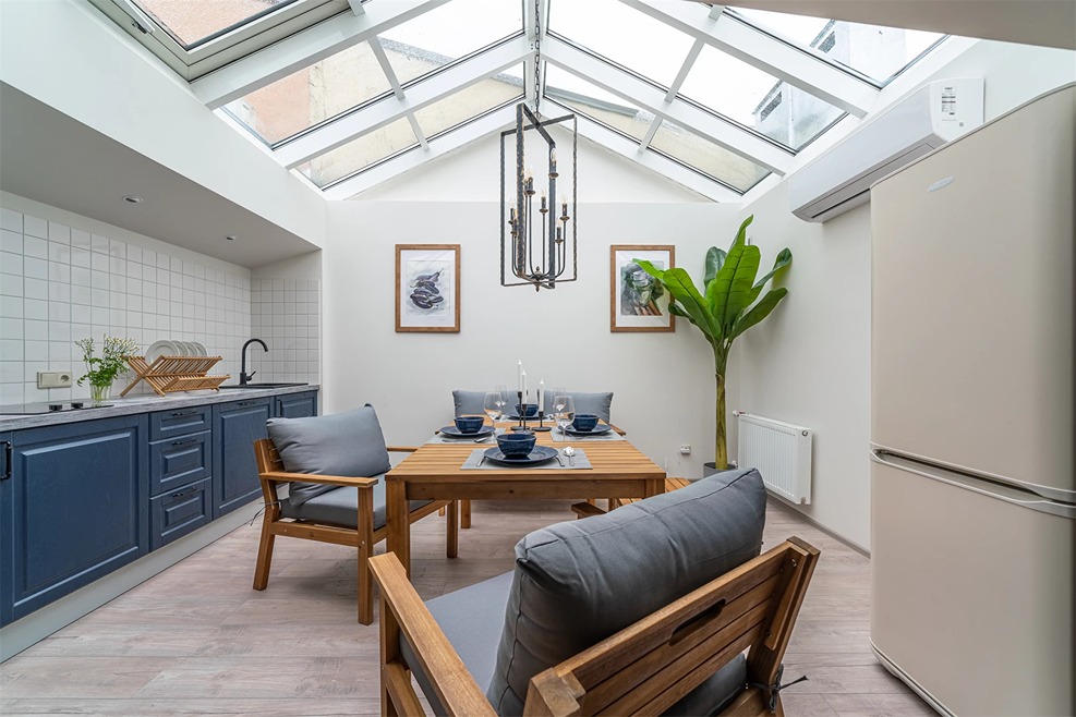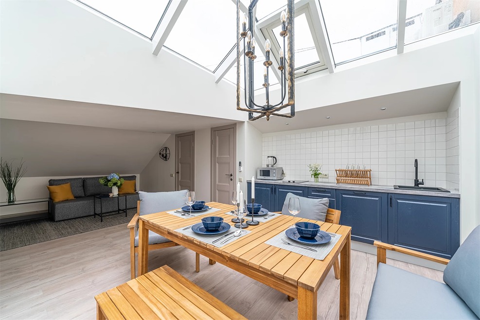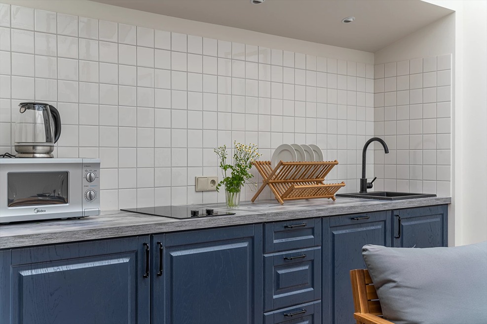 - Оборудование: гладильная доска, кофемашина, микроволновая печь, мини-холодильник, набор посуды, плита электрическая, стиральная машина, сушилка для белья, телевизор, утюг, электрочайник